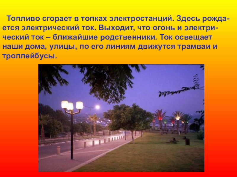 Слайд 9 Топливо сгорает в топках электростанций. Здесь рожда-