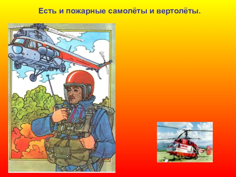Слайд 37Есть и пожарные самолёты и вертолёты.
