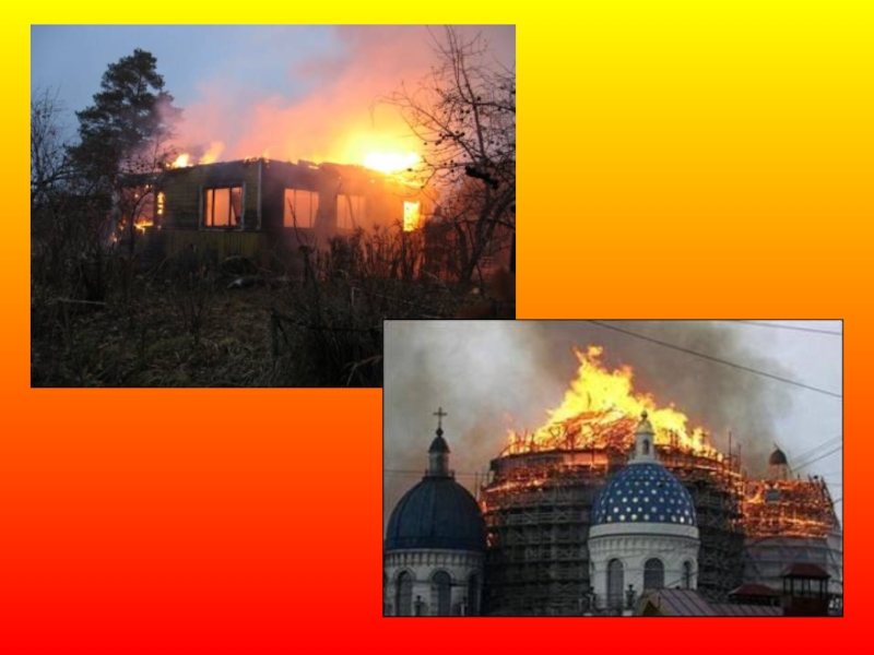 Слайд 17 Но и в мирное время огонь, выйдя из повиновения,