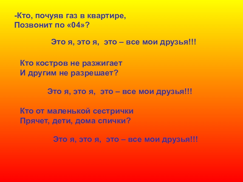 Слайд 15 Сила у друга – огня – большая - пребольшая!