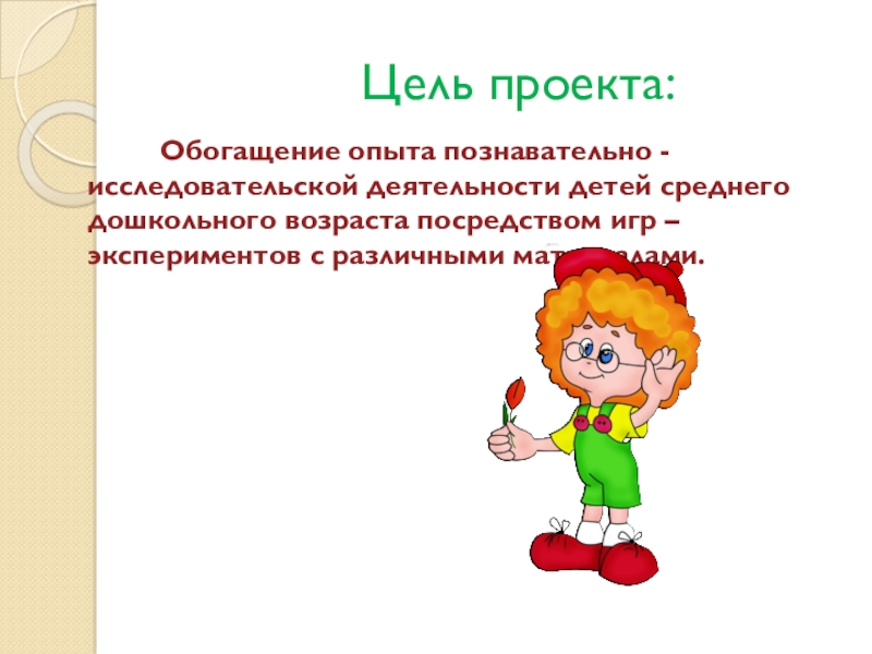 Обогащение опыта познавательно - исследовательской деятельности детей среднего дошкольного возраста посредством игр – экспериментов с различными материалами.