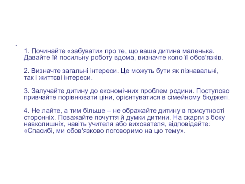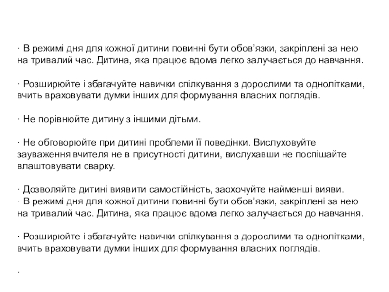 · Старання дитини обов’язково мають бути визнаними. Позитивна оцінка і добре, тепле ставлення необхідні дитині для хорошого самопочуття, для формування такої особливої риси як впевненість у своїх можливостях.