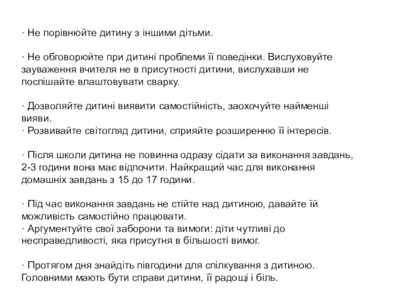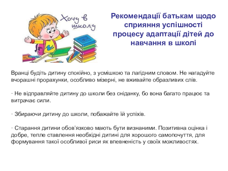 · Не відправляйте дитину до школи без сніданку, бо вона багато працює та витрачає сили.