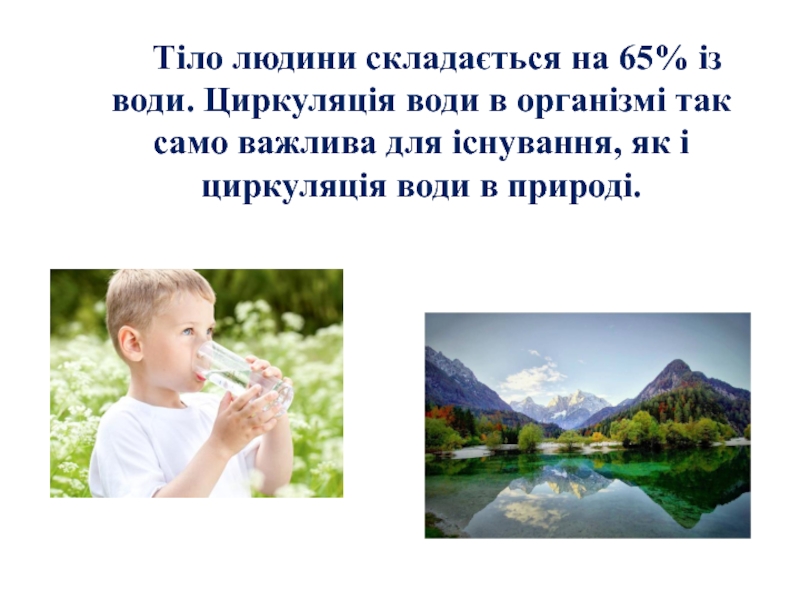 Слайд 15 Тіло людини складається на 65% із води.