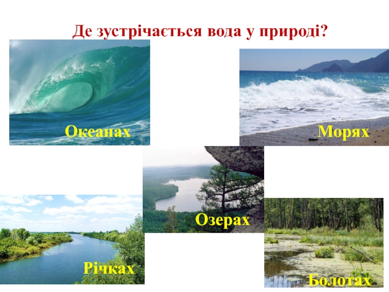 Слайд 5 Де зустрічається вода у природі?