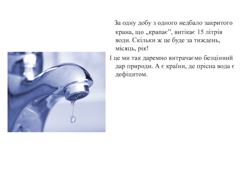 Слайд 23 За одну добу з одного недбало закритого крана, що