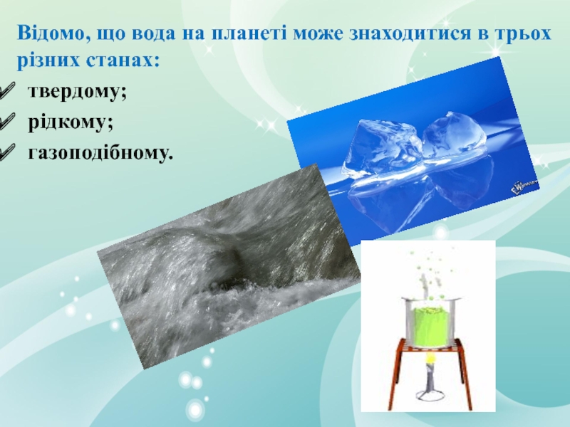 Слайд 12Відомо, що вода на планеті може знаходитися в трьох різних станах: