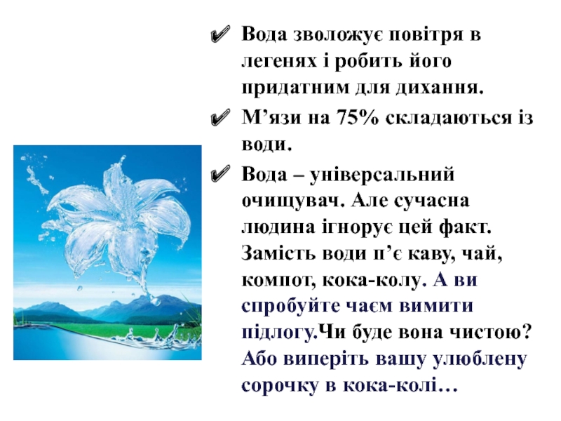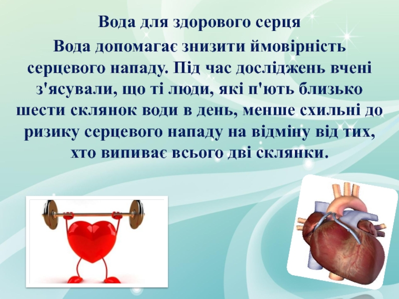 Слайд 16Вода для здорового серця