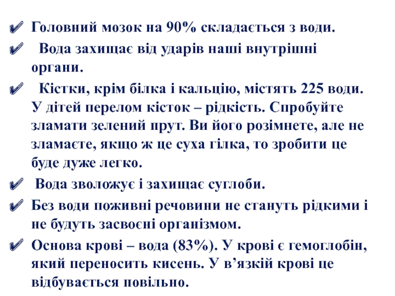 Слайд 17Головний мозок на 90% складається з води.