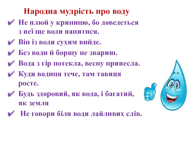 Слайд 26Народна мудрість про воду