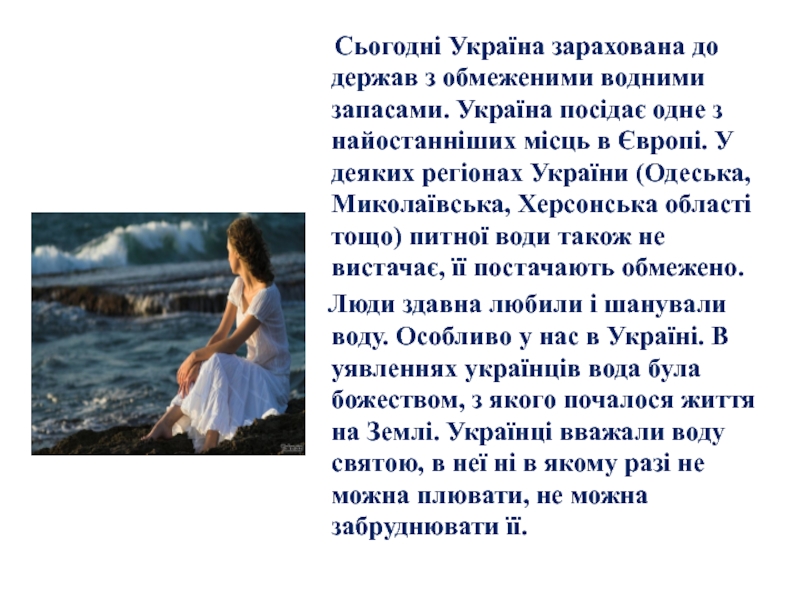 Слайд 24 Сьогодні Україна зарахована до держав з обмеженими водними