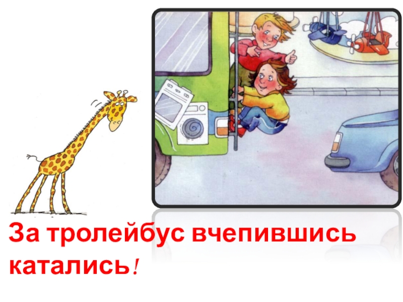 Слайд 3За тролейбус вчепившись катались!