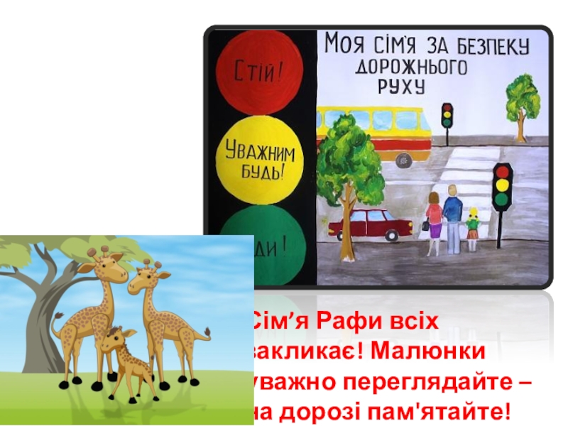 Сім’я Рафи всіх закликає! Малюнки уважно переглядайте – на дорозі пам'ятайте!