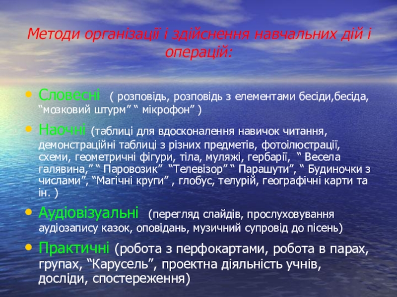 Слайд 6Методи організації і здійснення навчальних дій і операцій: