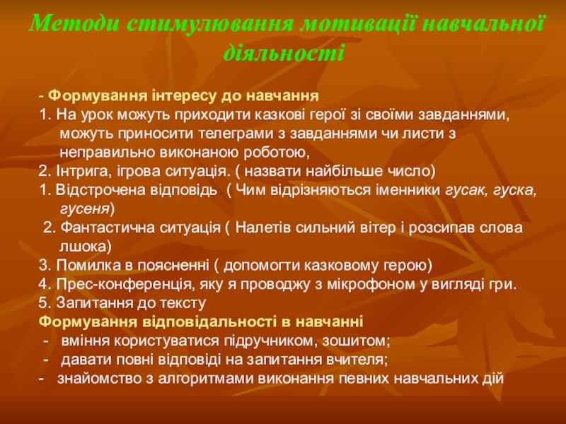 Методи стимулювання мотивації навчальної діяльності