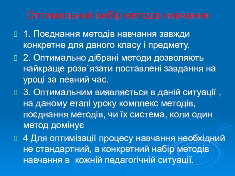 4 Для оптимізації процесу навчання необхідний не стандартний, а конкретний набір методів навчання в кожній педагогічній ситуації.