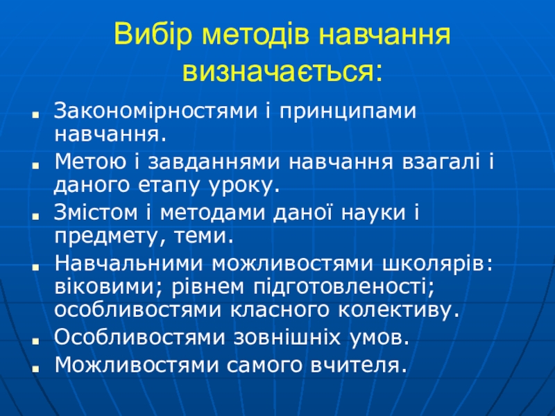 Слайд 4Вибір методів навчання визначається: