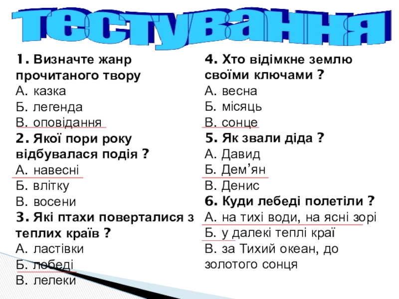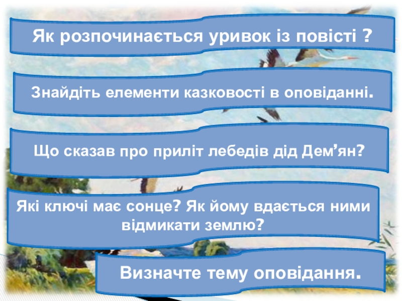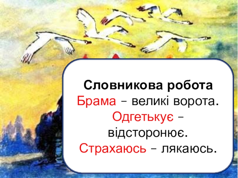 6. Куди лебеді полетіли ?