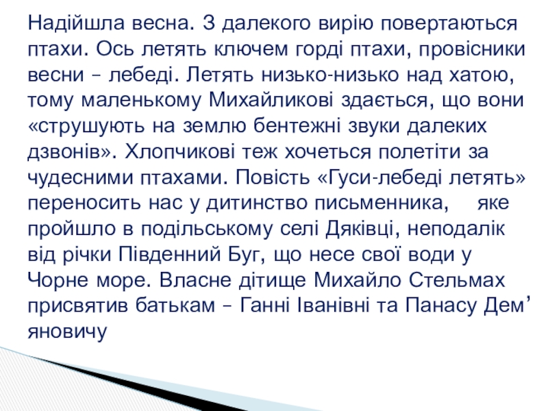 Чому автор назвав свою повість «Гуси-лебеді летять»?