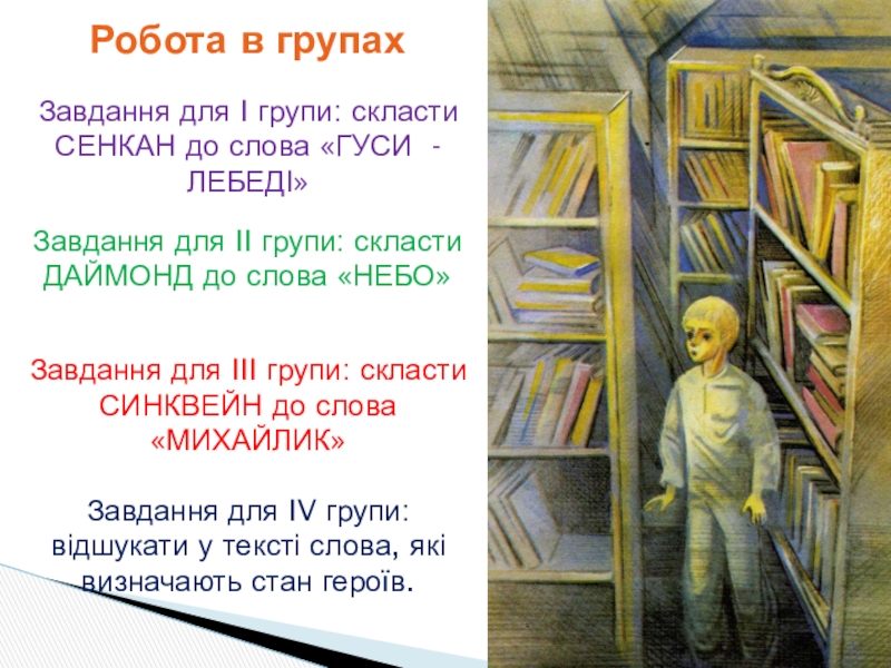 Завдання для IV групи: відшукати у тексті слова, які визначають стан героїв.