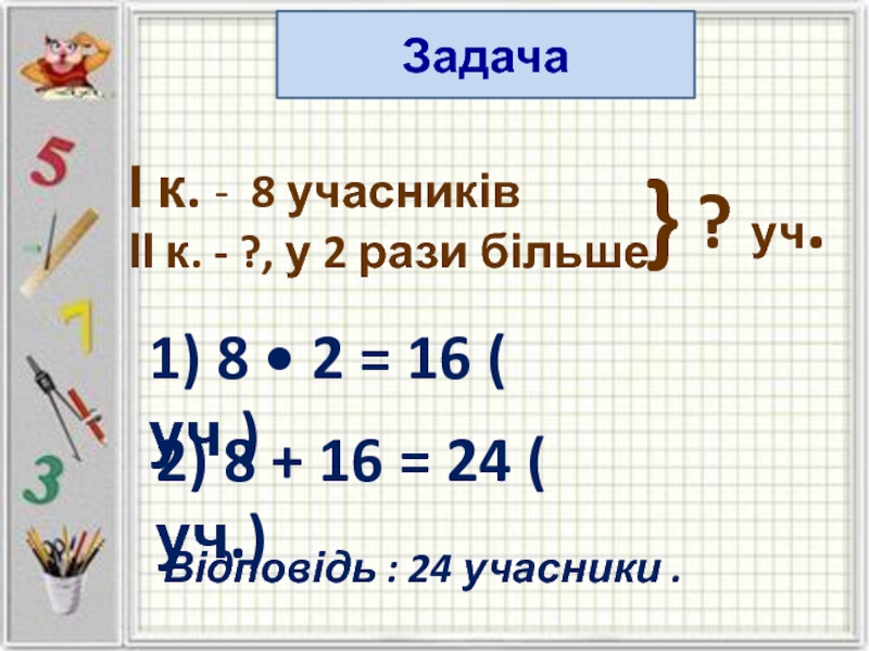 1) 8 • 2 = 16 ( уч.)