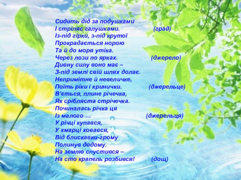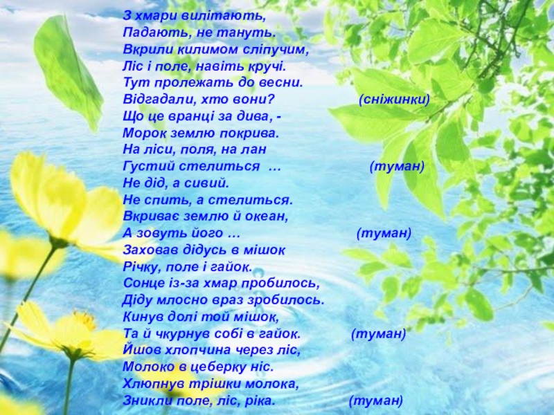 Слайд 14З хмари вилітають,