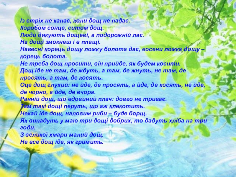 хмара приносить дощ.