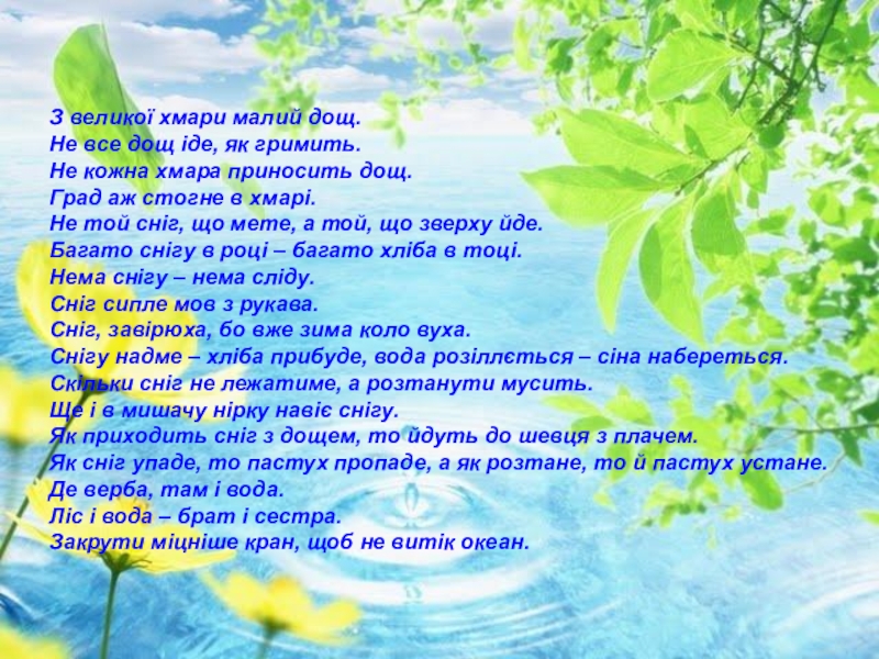 Слайд 6З великої хмари малий дощ.