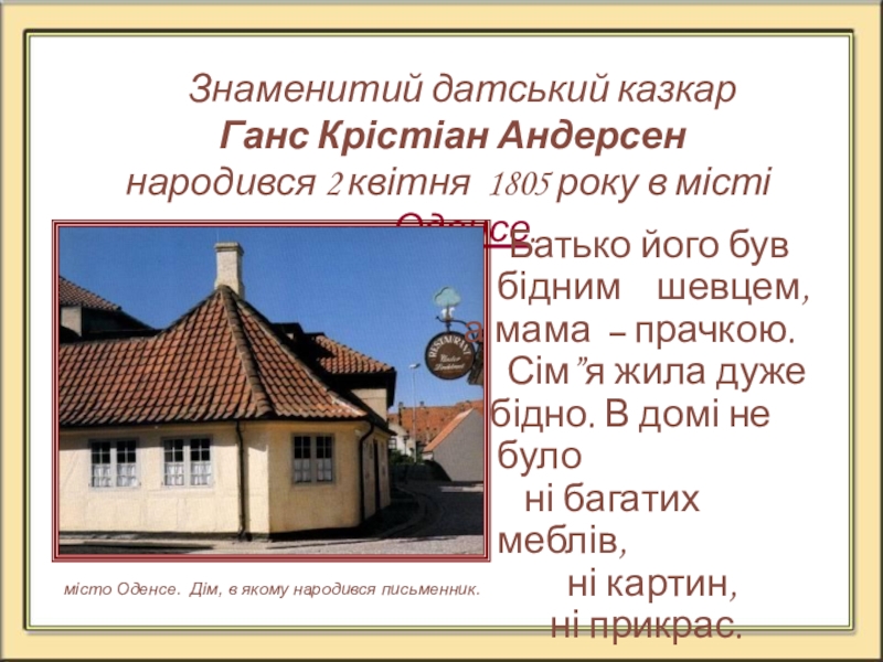 місто Оденсе. Дім, в якому народився письменник.