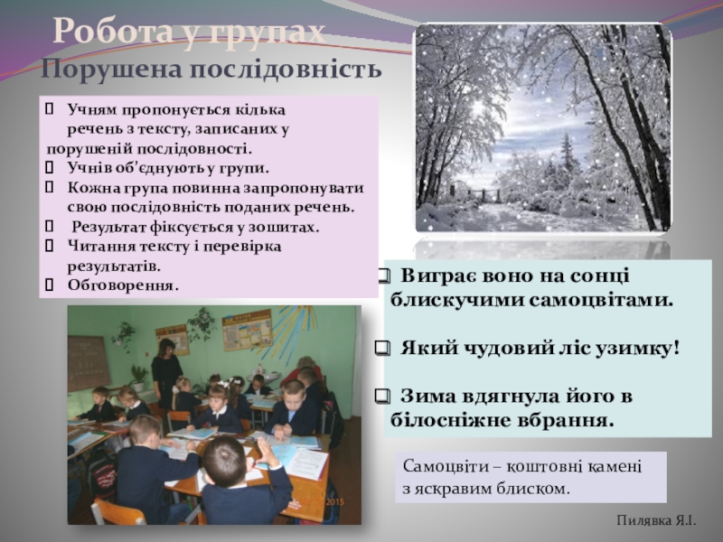 Кожна група повинна запропонувати свою послідовність поданих речень.