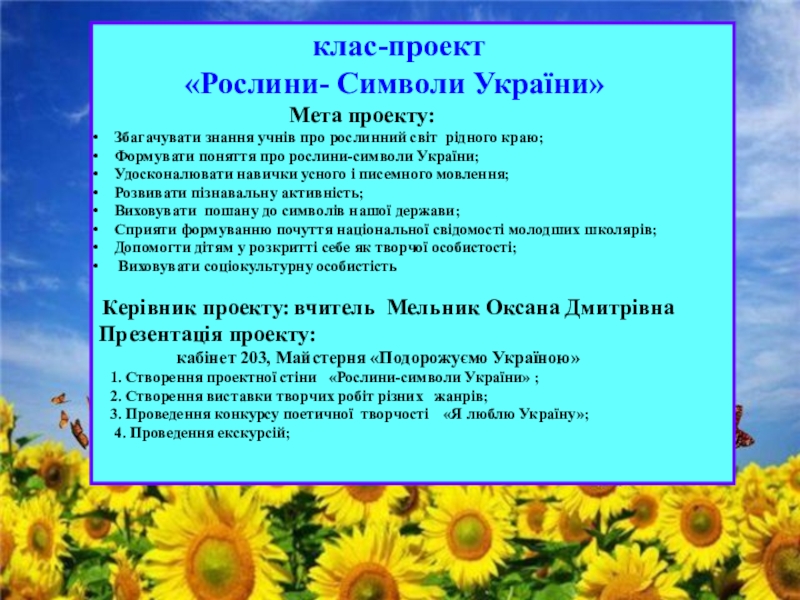 Керівник проекту: вчитель Мельник Оксана Дмитрівна