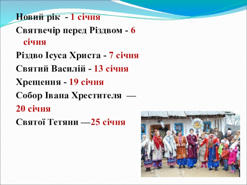 Слайд 97 січня — Різдво.