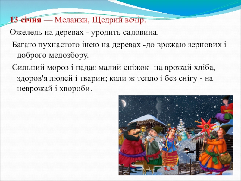 Слайд 1013 січня — Меланки, Щедрий вечір.