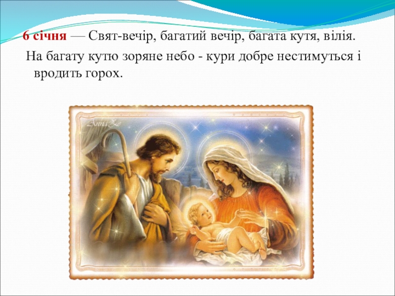 Слайд 76 січня — Свят-вечір, багатий вечір, багата кутя, вілія.