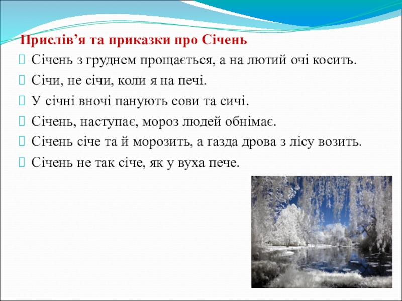 Слайд 15Прислів’я та приказки про Січень