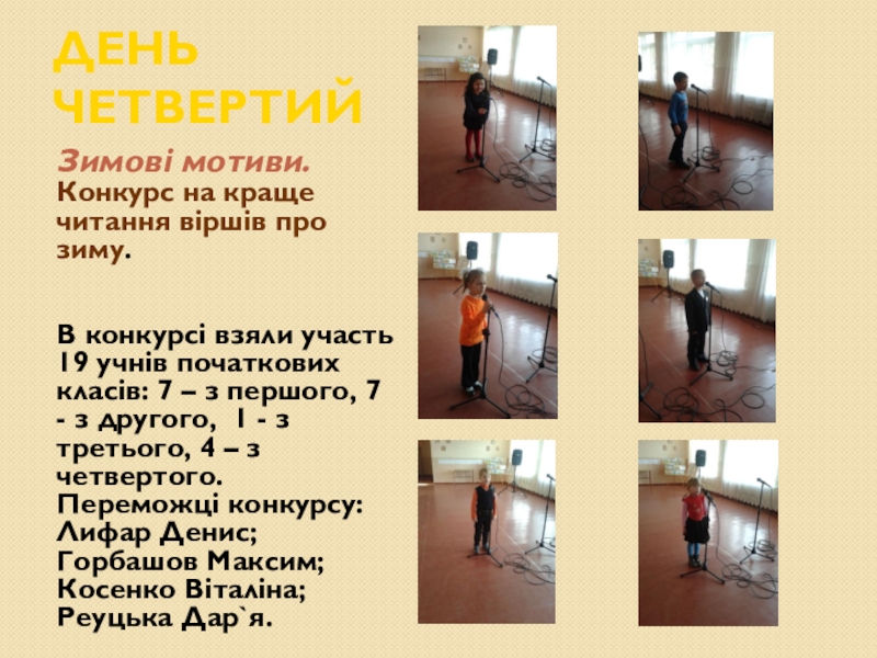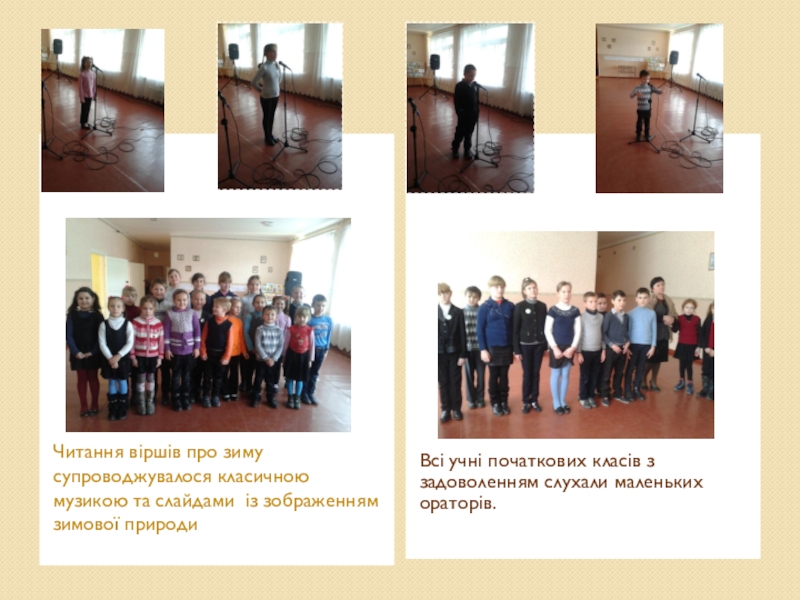Всі учні початкових класів з задоволенням слухали маленьких ораторів.