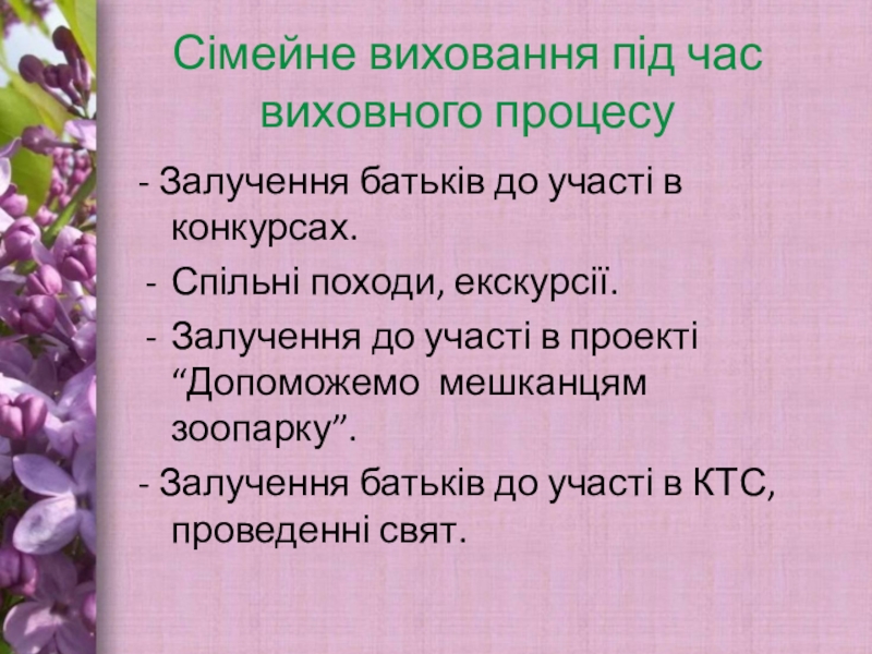 - Залучення батьків до участі в