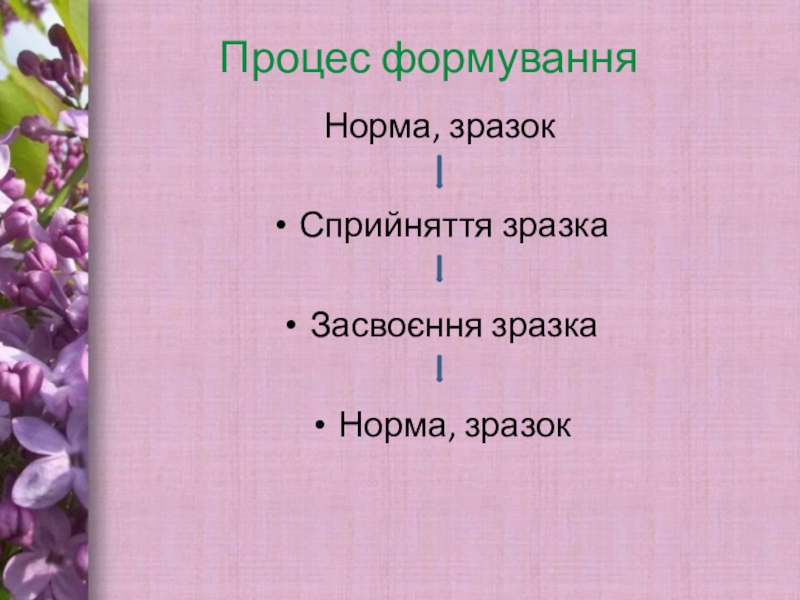 Процес формуванняНорма, зразокСприйняття зразкаЗасвоєння зразкаНорма, зразок