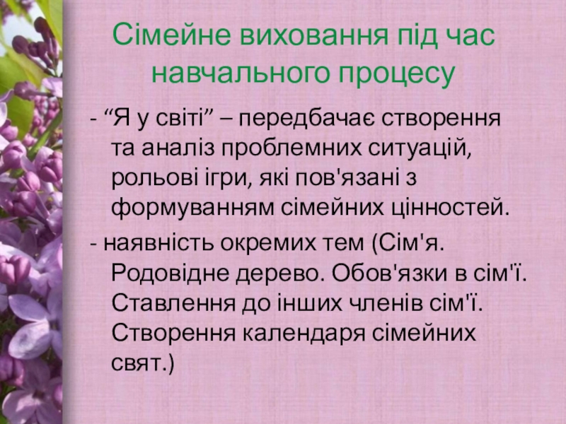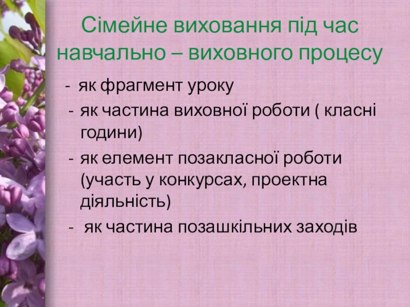 Слайд 3Сімейне виховання під час навчально – виховного процесу
