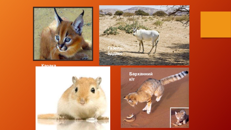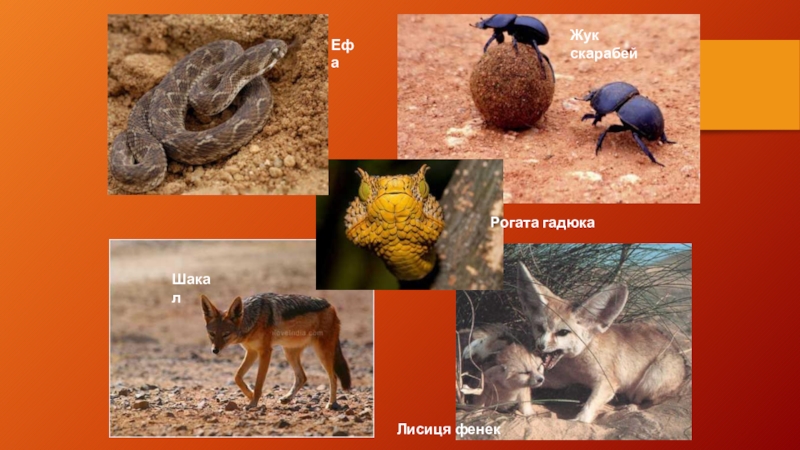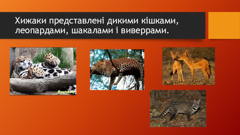 Слайд 9Хижаки представлені дикими кішками, леопардами, шакалами і виверрами.