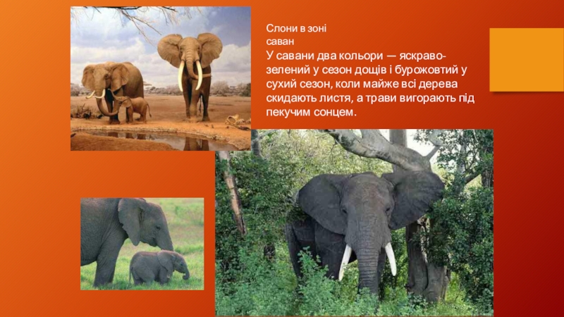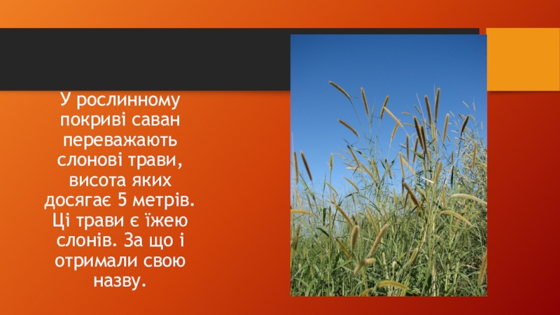 Слайд 20У рослинному покриві саван переважають слонові трави, висота яких досягає 5