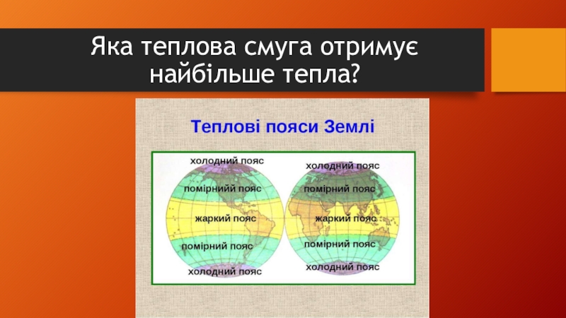 Слайд 2Яка теплова смуга отримує найбільше тепла?