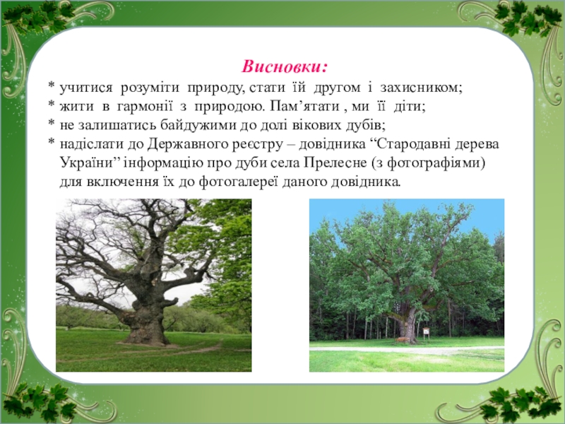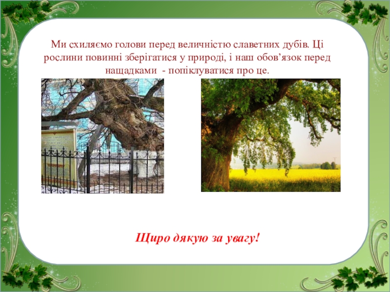 Ми схиляємо голови перед величністю славетних дубів. Ці рослини повинні зберігатися