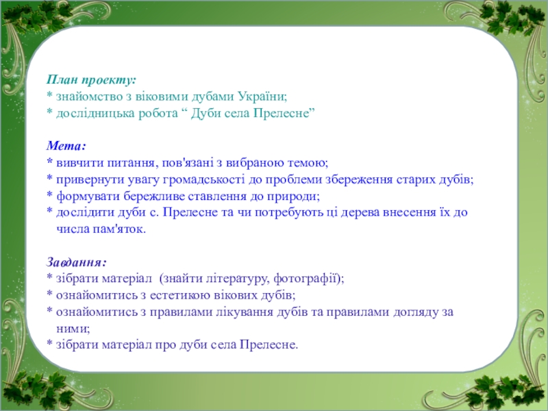 * дослідити дуби с. Прелесне та чи потребують ці дерева внесення їх до