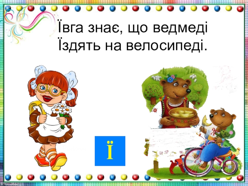 Слайд 29Ївга знає, що ведмеді Їздять на велосипеді.