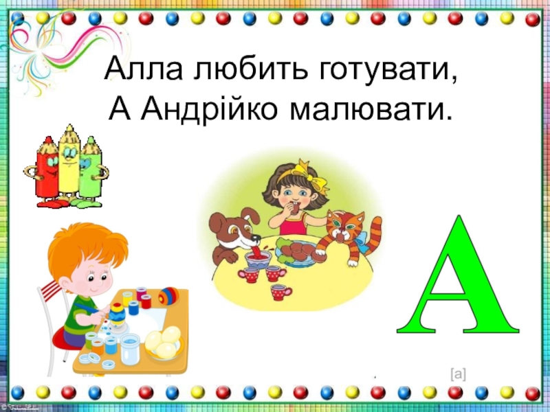 Слайд 4Алла любить готувати, А Андрійко малювати.
