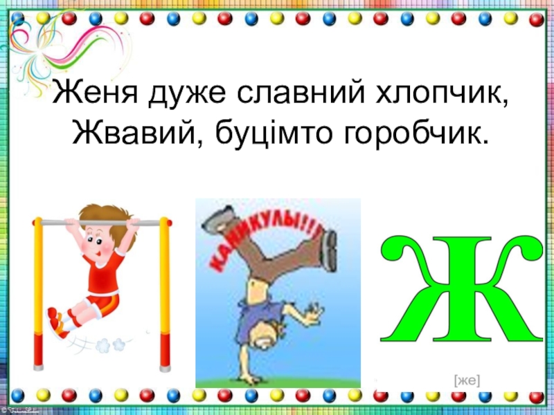 Слайд 21Женя дуже славний хлопчик, Жвавий, буцімто горобчик.