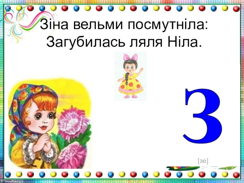 Слайд 23Зіна вельми посмутніла: Загубилась ляля Ніла.