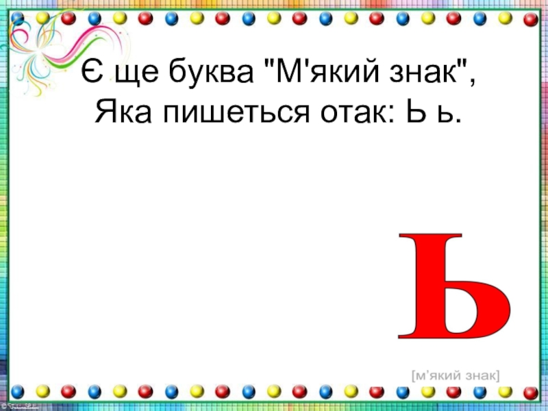 Слайд 69Є ще буква "М'який знак", Яка пишеться отак: Ь ь.