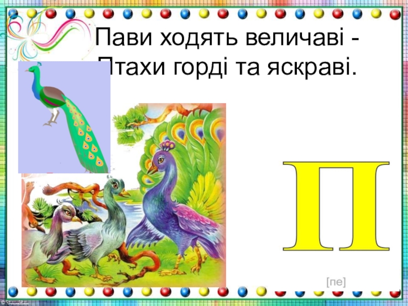 Слайд 43Пави ходять величаві - Птахи горді та яскраві.